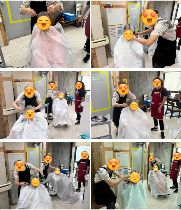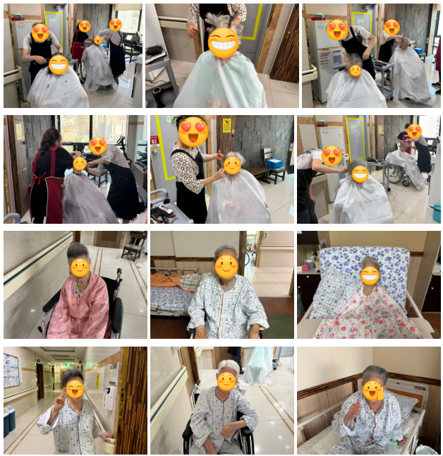 머리 커트 후 환자분들의 미소가 더욱 빛났습니다.