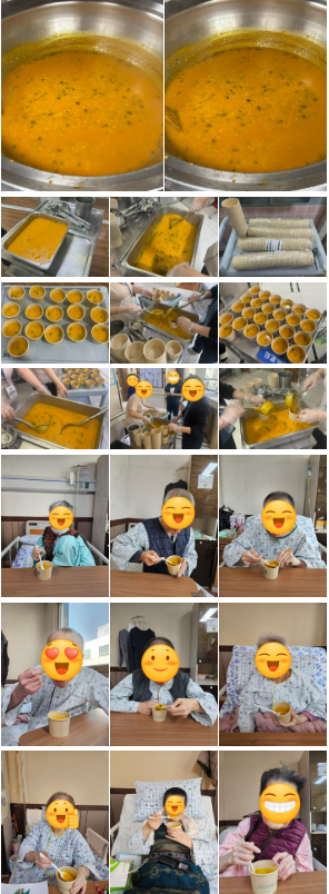 따끈한 호박죽을 담아 전달하며 환자분들의 상태를 살피고 안부 인사도 함께 나누는 시간으로 이어졌습니다.