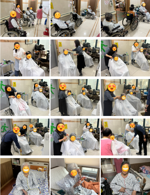 머리 커트 후 환자분들의 미소가 더욱 빛났습니다.
