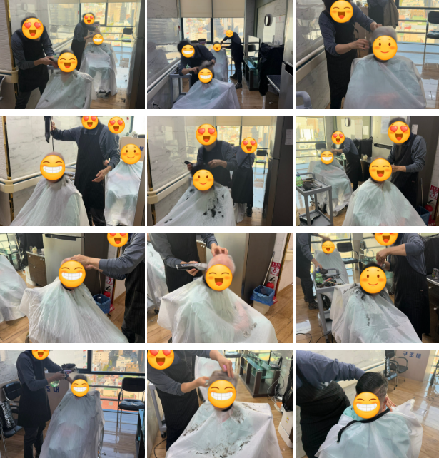 머리 커트 후 환자분들의 미소가 더욱 빛났습니다.
