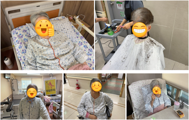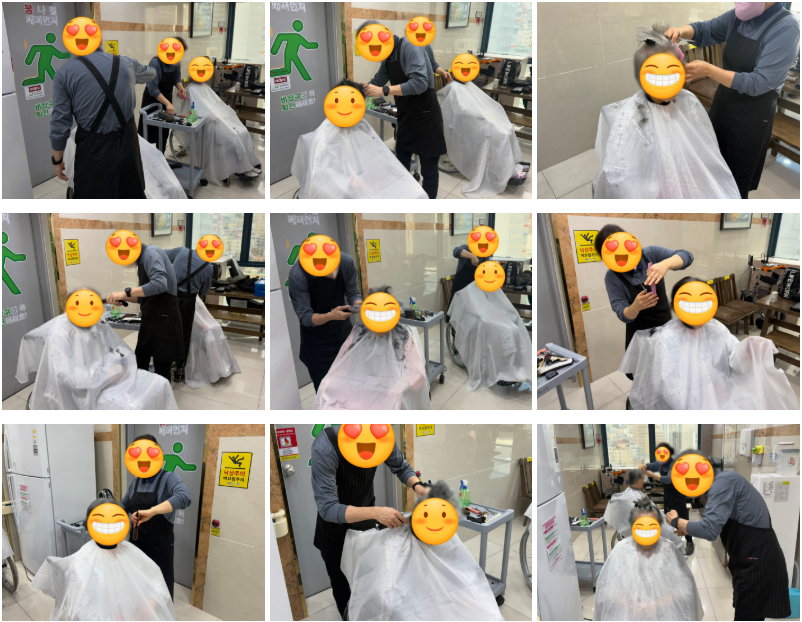 머리 커트 후 환자분들의 미소가 더욱 빛났습니다.