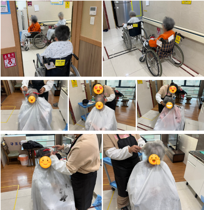 머리 커트 후 환자분들의 미소가 더욱 빛났습니다.