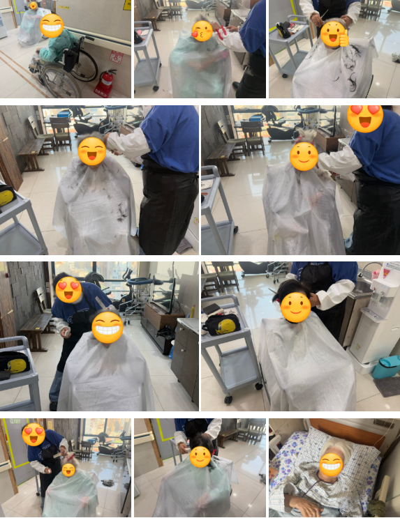 머리 커트 후 환자분들의 미소가 더욱 빛났습니다.